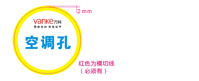 2、模切線內有色塊的情況須有三毫米以上/文字離啤線須二毫米以上(原則上距離越遠誤差造成的影響越小),以免模切誤差導致色塊不均勻、文字貼邊而影響美觀,此類問題不在客訴範圍之內